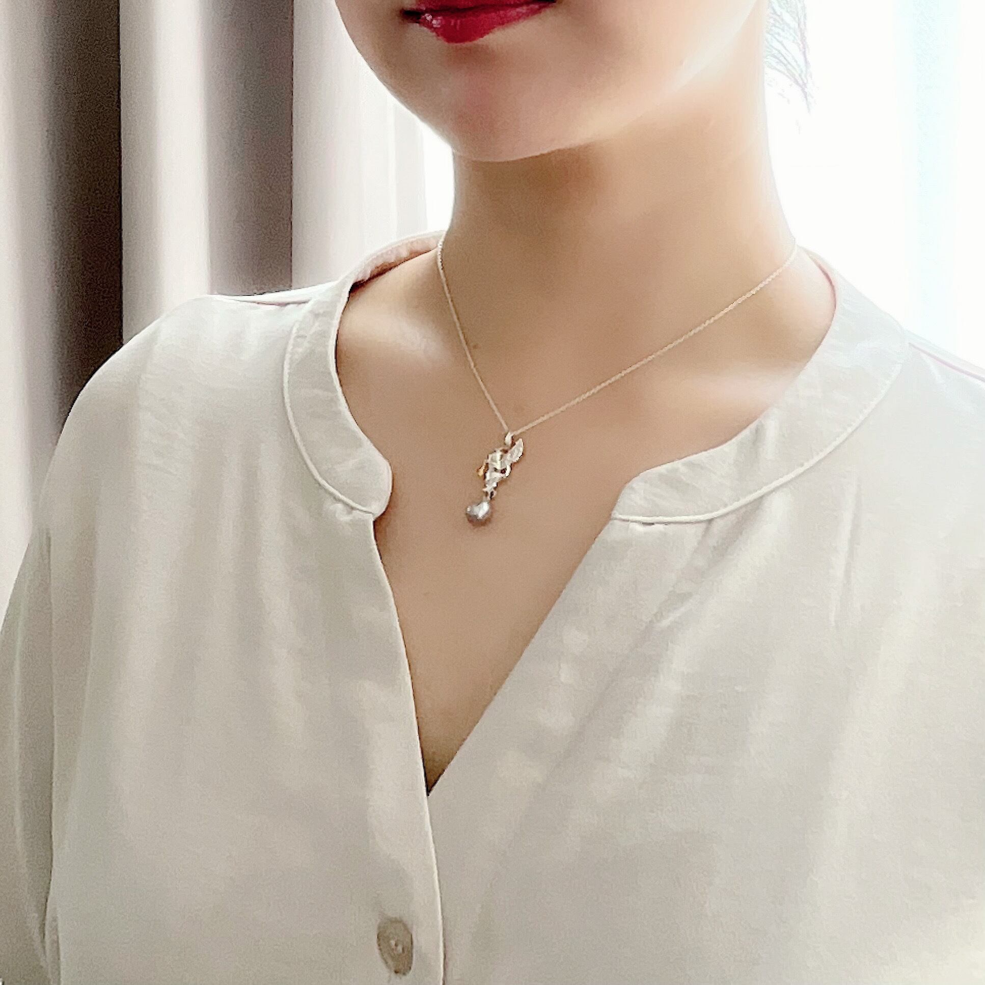甘すぎないモチーフと深みのあるパールの色合いですので、大人の女性も楽しんでいただけるペンダントです。