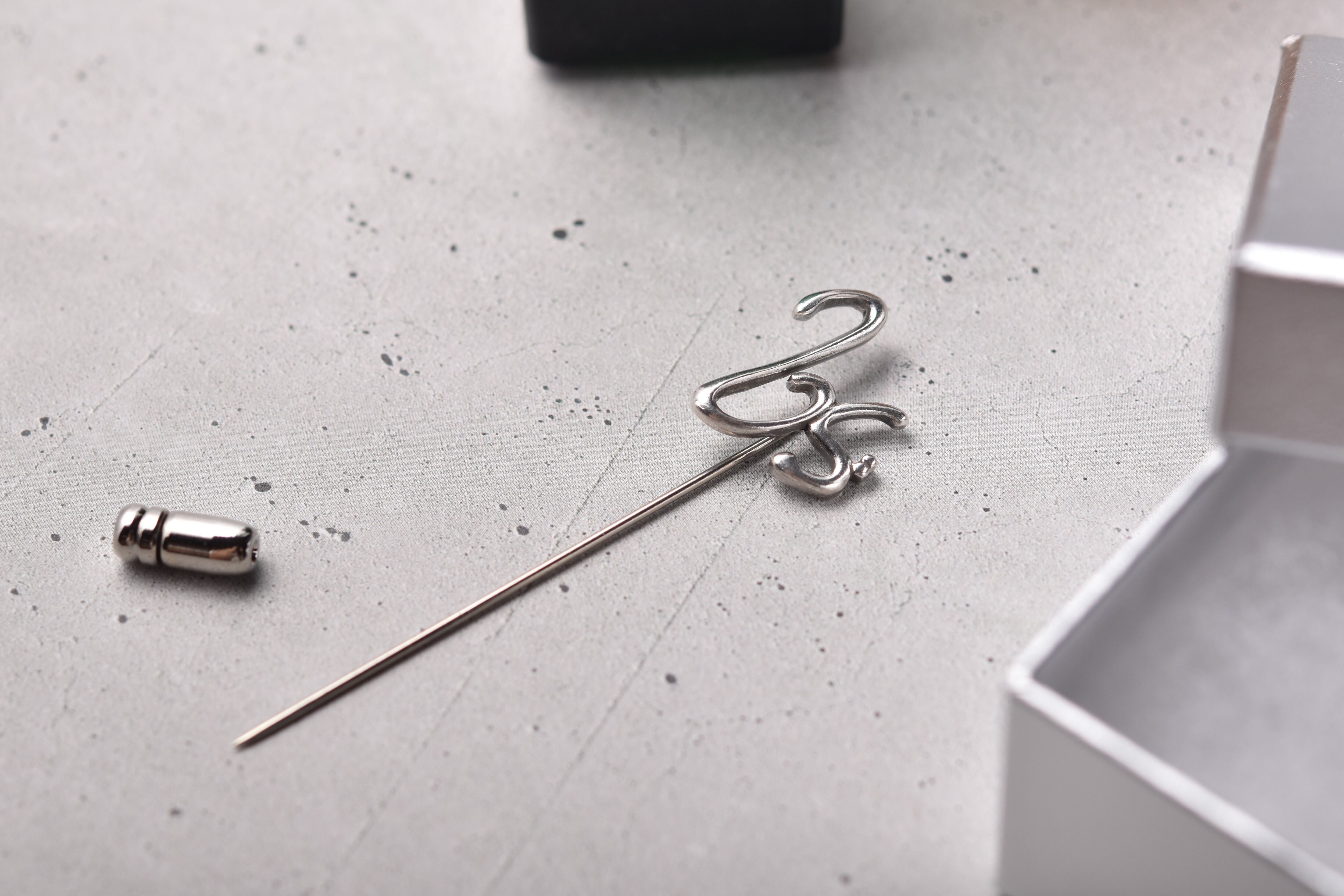 ベートーヴェンの自筆譜から生み出した、ト音記号とヘ音記号のシルバー製のハットピンです。